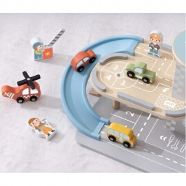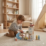 Ζήστε τον παλμό της πόλης με το Ξύλινο Πάρκινγκ - Γκαράζ της Tooky Toy, ένα premium σετ που προσφέρει ατελείωτες ώρες φανταστικού και δημιουργικού παιχνιδιού. Τα παιδιά μπορούν να οδηγήσουν τα αυτοκίνητα στις ράμπες, να τα παρκάρουν σε διαφορετικά επίπεδα, να ανεφοδιάσουν καύσιμα ή να φορτίσουν ηλεκτρικά οχήματα και να απογειώσουν το ξύλινο ελικόπτερο από το ελικοδρόμιο της ταράτσας.