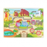 Στο παιχνίδι λαβύρινθου με συρόμενα στοιχεία, τα ζωάκια πρέπει να τοποθετηθούν στις σωστές θέσεις τους.