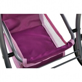 Καρότσι κούκλας μεταλλικού σκελετού που διπλώνει και ξεδιπλώνει για εύκολη μεταφορά κι αποθήκευση. Διαθέτει 3 ρόδες και περιλαμβάνει δίχτυ για ψώνια. Η λαβή του ρυθμίζεται σε ύψος 33 έως 59 εκ. για να είναι κατάλληλο για όλες τις ηλικίες, ενώ διαθέτει κουκούλα που ανοιγοκλείνει. Κατάλληλο για κούκλες έως 46εκ. Διαστάσεις 59 x 35,5 x 63,5 εκ.
