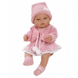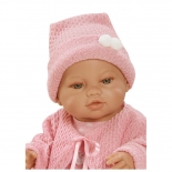 Φορά όμορφα ρουχαλάκια, που περιλαμβάνουν πλεκτό ζακετάκι, φορμάκι και σκουφί, δημιουργώντας ένα τρυφερό και κομψό σύνολο. Είναι ισπανικής κατασκευής και διαθέτει ευχάριστο άρωμα βανίλιας, προσφέροντας μια μοναδική αισθητηριακή εμπειρία. Χάρη στις αρθρώσεις του, μπορεί να πάρει φυσικές στάσεις, όπως ένα πραγματικό μωρό, ενισχύοντας το ρεαλιστικό παιχνίδι ρόλων.