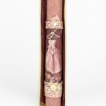 Μια λαμπάδα που αποπνέει αέρινη κομψότητα. Με κεντρικό θέμα ένα ρομαντικό φόρεμα με δαντελένιες λεπτομέρειες και vintage αναφορές, αυτή η χειροποίητη δημιουργία είναι ιδανική για κορίτσια στην εφηβεία ή γυναίκες που εκτιμούν το "parisian chic" στυλ. Η ρομαντική αισθητική και η προσοχή στην υφή των υλικών μετατρέπουν τη λαμπάδα σε ένα μικρό έργο τέχνης. Μια εξαιρετική επιλογή για τον νονό ή τη νονά που θέλει να προσφέρει ένα δώρο με διακριτική πολυτέλεια και έντονο καλλιτεχνικό αποτύπωμα, που ξεχωρίζει για τη χάρη και τη νοσταλγική του διάθεση.