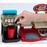 Φτιάξε και πρόσφερε τα burger σου με το παιχνίδι μίμησης Burger Shop. Περιλαμβάνει μηχάνημα λειτουργικό αναψυκτικών με νερό, grill με τα υλικά του burger, ποτήρι και μηχάνημα για πιστωτικές κάρτες/