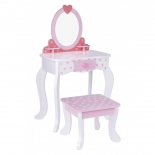 Η ξύλινη τουαλέτα ομορφιάς θα ενθουσιάσει τις μικρές μας φίλες! Περιλαμβάνει καρεκλάκι και συρταράκι αποθήκευσης προσωπικών αντικειμένων. Έχει κομψό σχεδιασμό και αποτελείται από ροζ και λευκό χρώμα. Μέσω του παιχνιδιού ρόλων το παιδί αναπτύσσει τη φαντασία του, το αίσθημα αυτοπεποίθησης και τη δημιουργικότητά του. Επιπλέον, καλλιεργεί τις κοινωνικές και κινητικές του δεξιότητές, καθώς και τον έλεγχο των συναισθημάτων του.